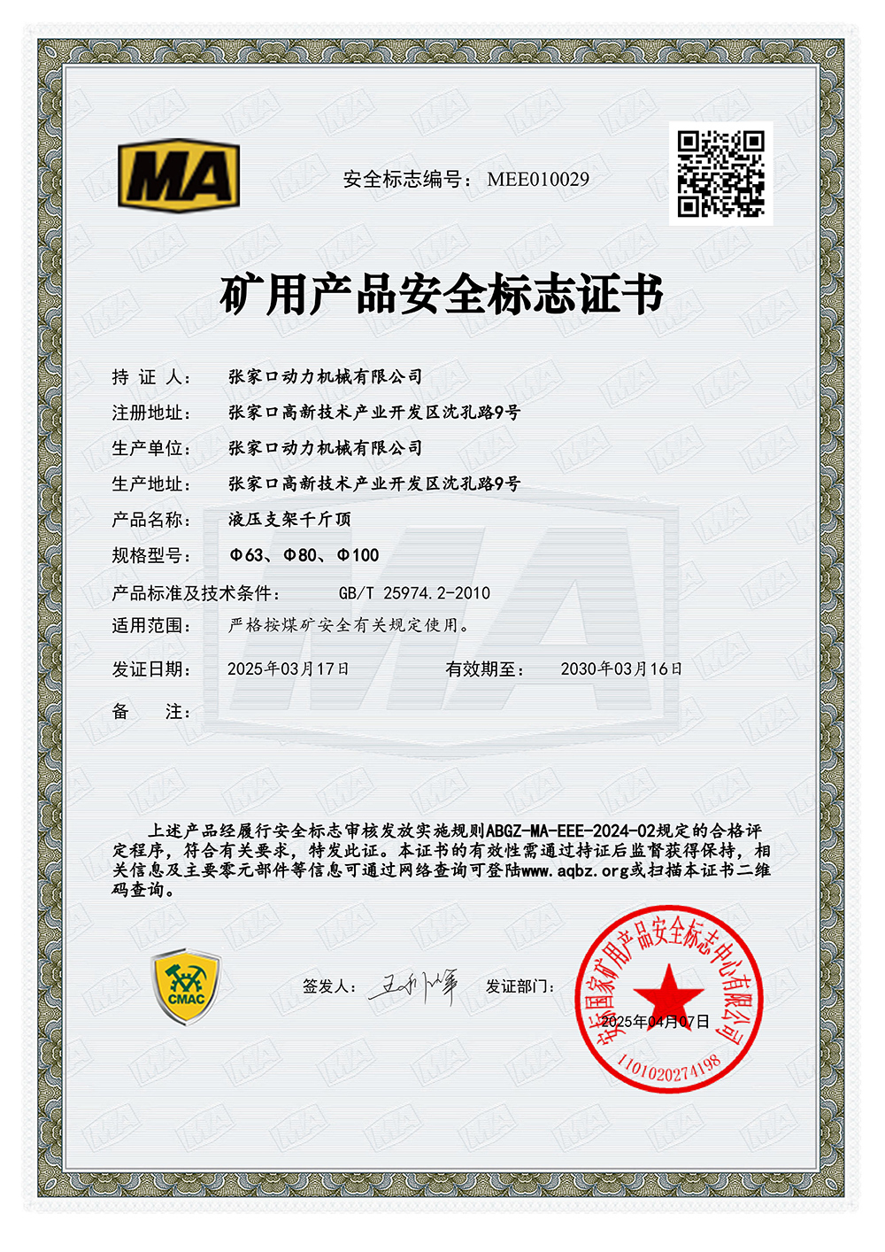 張家口動(dòng)力機(jī)械有限公司生產(chǎn)資質(zhì)展示